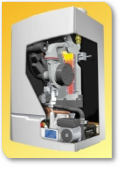 Brennwertkessel nutzen die Kondensationswärme des im Abgas enthaltenen Wasserdampfes